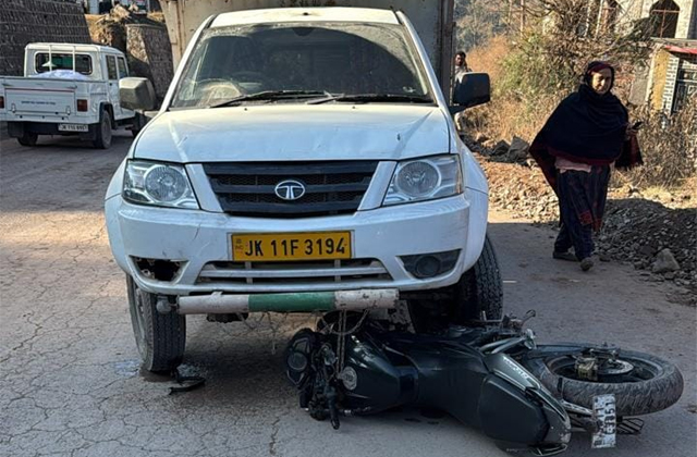 बुधवार को राजौरी जिले के मंजाकोट इलाके में एक मोटरसाइकिल जिसका रजिस्ट्रेशन नंबर JK11C 3351 था और एक टाटा योद्धा लोड कैरियर जिसका रजिस्ट्रेशन नंबर JK11F 3194 था, के बीच हुई सड़क दुर्घटना में एक छात्र की मौत हो गई।