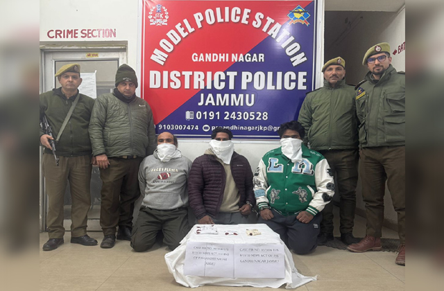 जम्मू (तनवीर सिंह): नशे के खिलाफ चलाए जा रहे अभियान के तहत जम्मू पुलिस साउथ ज़ोन को एक बड़ी सफलता हाथ लगी है। पुलिस स्टेशन गांधी नगर की टीम ने अलग-अलग कार्रवाइयों में तीन नशा तस्करों को गिरफ्तार कर उनके कब्जे से लगभग 70 ग्राम हेरोइन (चिट्टा) जैसा नशीला पदार्थ बरामद किया है। यह कार्रवाई एसएसपी जम्मू के समग्र निर्देशन में तथा एसपी साउथ, एसडीपीओ साउथ और एसएचओ पीएस गांधी नगर की निगरानी में की गई।