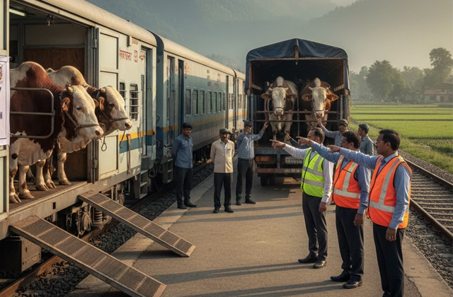 जम्मू ( तनवीर ) : उत्तर रेलवे जम्मू मंडल ने माल ढुलाई के क्षेत्र में एक नई ऐतिहासिक उपलब्धि हासिल की है। पहली बार पार्सल वैन के माध्यम से बैंगलोर (कर्नाटक) से जम्मू-कश्मीर तक विदेशी नस्ल के 23 सांडों का सुरक्षित परिवहन किया गया है। यह परिवहन कृषि एवं पशुपालन विभाग की प्रजनन विकास योजना (Breeding Development Program) के तहत किया गया। इनमें से 6 सांडों को बारी ब्राह्मणा गुड्स शेड और 17 सांडों को बडगाम गुड्स शेड में उतारा गया।