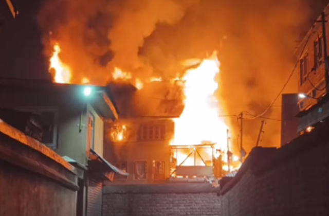 श्रीनगर ( मीर आफताब ) : श्रीनगर के आलमगिरी बाज़ार इलाके में आग लगने की एक घटना सामने आई है, जिसके कारण 3 रिहायशी इमारतों को भारी नुकसान पहुंचा है। अधिकारियों के अनुसार, स्टेट फायर कंट्रोल रूम बटमालू को इस घटना के संबंध में एक आपातकालीन कॉल मिली, जिसके बाद अलग-अलग स्टेशनों से दमकल की गाड़ियां तुरंत मौके पर भेजी गईं। मौके पर पहुंचने पर पता चला कि तीनों इमारतें आग की लपटों में घिरी हुई थीं।