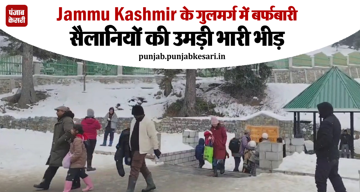 Jammu Kashmir के गुलमर्ग में बर्फबारी, सैलानियों की उमड़ी भारी भीड़