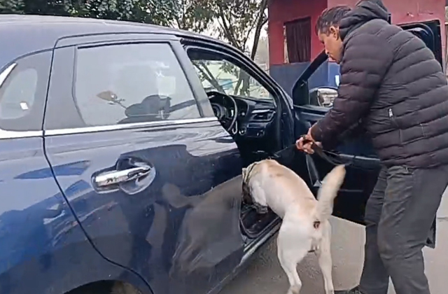 तस्वीरों में आप देख सकते हैं कि किस तरह इंदिरा चौक पर डॉग स्क्वायड द्वारा हर वाहन की सघन जांच की जा रही है।