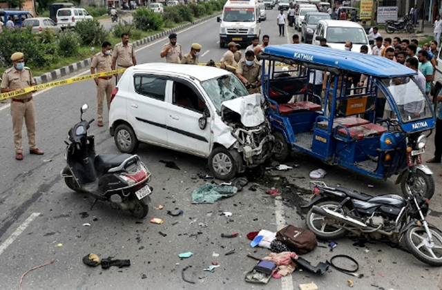 प्रत्यक्ष दर्शियों ने बताया कि इस घटना में एक स्कूटी, एक मोटरसाइकिल , एक इ-रिक्शा और एक कार क्षतिग्रस्त हुई है। लोगों ने बताया कि तेज रफ्तार कार ने पहले स्कूटी को टक्कर मारी जिसके बाद उसने एक ऑटो को अपनी चपेट में ले लिया। बतायाा जा रहा है कि ऑटो में 2-3 लोग थे जो कि बुरी तरह से घायल हुए है जिन्हें अस्पताल में भर्ती करवाया गया है। वहीं कार में भी बच्चों सहित 4-5 लोग सवार थे जिन्हें भी चोटें आई हैं और उन्हें भी अस्पताल में भर्ती करवाया गया है। यह हादसा इतना भयानक था कि कार और ऑटो बुरी तरह से क्षतिग्रस्त हो गए हैं।