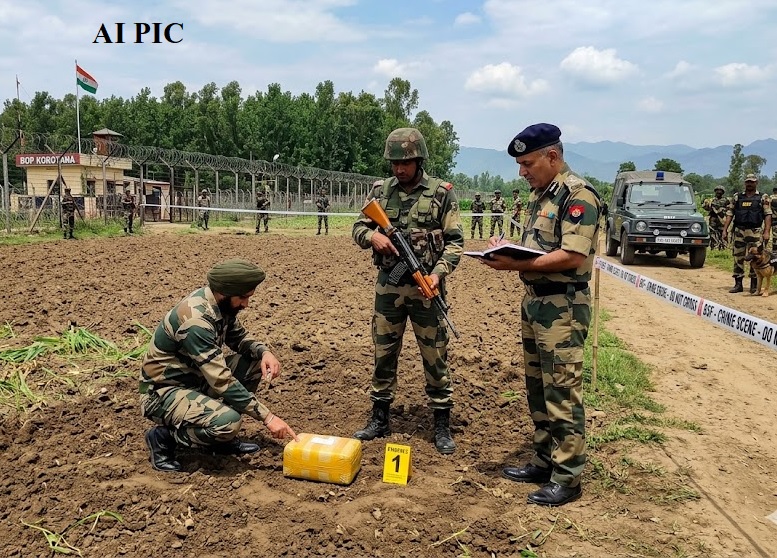 आर.एस. पुरा (मुकेश ): सीमावर्ती क्षेत्र कोरोटाना खुर्द के पास बीओपी कोरोटाना के नजदीक सुरक्षा बलों द्वारा सर्च ऑपरेशन के दौरान एक संदिग्ध पैकेट बरामद किया गया है। सूत्रों से मिली जानकारी के अनुसार, बीती रात करीब 10 बजे टीम ने गांव कोरोटाना खुर्द निवासी जोगिंदर सिंह पुत्र अमरनाथ के कृषि खेत में तलाशी अभियान चलाया। तलाशी के दौरान खेत से पीले रंग की टेप में लिपटा एक पैकेट बरामद हुआ, जिसका वजन लगभग 1.5 से 2 किलोग्राम बताया जा रहा है।