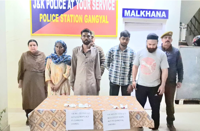 जम्मू ( तनवीर ) : जम्मू में नशे के खिलाफ चलाए जा रहे अभियान को बड़ी सफलता मिली है। ड्रग तस्करी पर सख्त कार्रवाई करते हुए जम्मू पुलिस के साउथ जोन ने पिछले 24 घंटों के भीतर पुलिस स्टेशन गंग्याल में NDPS एक्ट के तहत दो अलग-अलग FIR दर्ज कर नशा कारोबारियों पर कड़ा शिकंजा कसा है। इस कार्रवाई के दौरान लगभग 30 ग्राम हेरोइन ( चिट्टा ) बरामद की गई, साथ ही एक इलेक्ट्रॉनिक वजन मशीन भी जब्त की गई और चार ड्रग तस्करों को गिरफ्तार किया गया। यह ऑपरेशन SSP जम्मू की पूरी देखरेख में, SP साउथ के गाइडेंस और SDPO साउथ की करीबी निगरानी में किया गया।