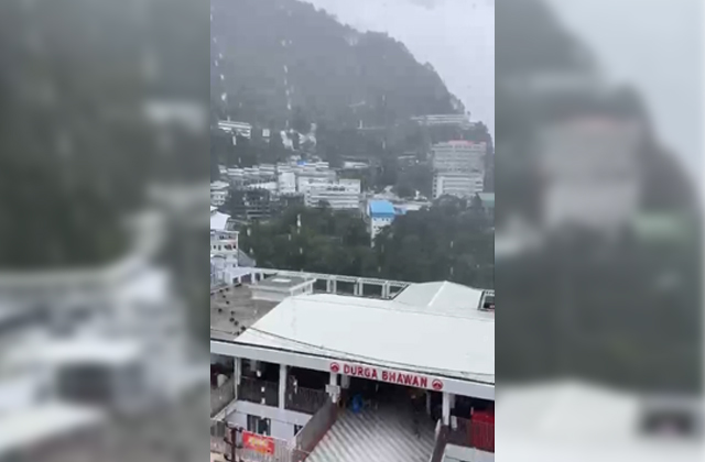 कटरा ( अमित शर्मा ) : त्रिकुटा पर्वत पर मौसम ने करवट बदली है और झमाझम बारिश शुरू हो गई है, लेकिन माता के भक्तों का उत्साह कम होने का नाम नहीं ले रहा है। मां वैष्णो देवी दरबार में आज बारिश हो रही है जिससे वहां का वातावरण काफी सुहावना हो गया है और गर्मी से राहत मिल रही है। बारिश के बावजूद भी श्रद्धालुओं की आस्था बरकरार है और व लगातार मां के जयकारे लगाते हुए मां के दर्शन पा रहे हैं।
