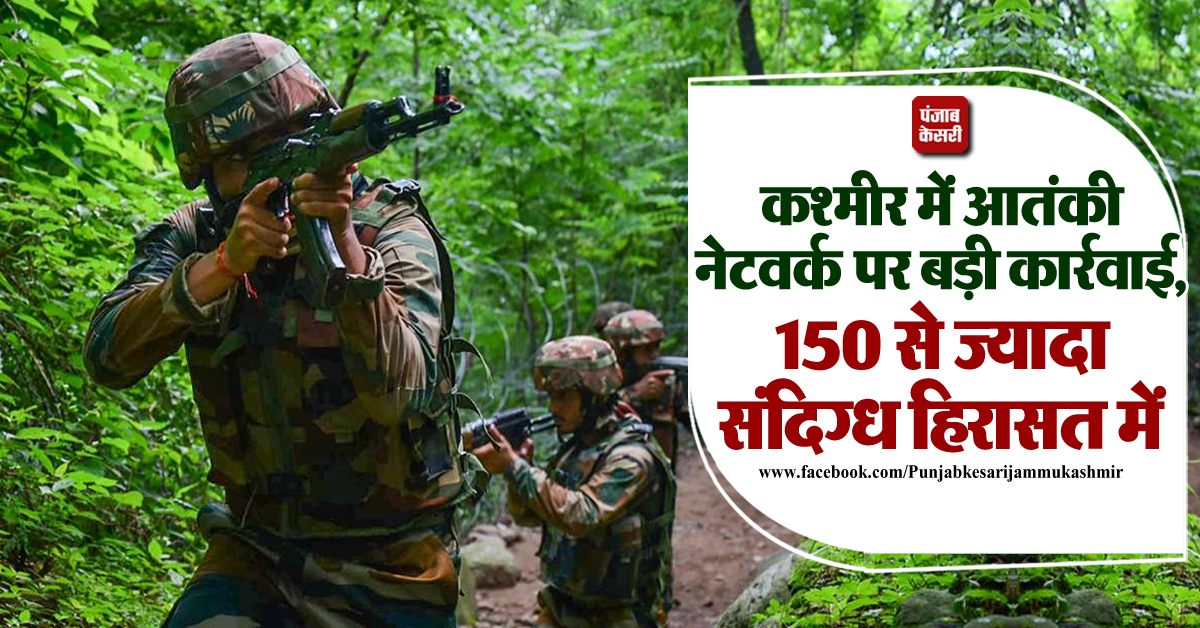 कश्मीर में आतंकी नेटवर्क पर बड़ी कार्रवाई, 150 से अधिक संदिग्ध हिरासत में