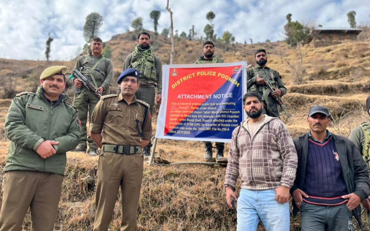 कानूनी प्रक्रिया से लगातार बचने के कारण, आरोपी को माननीय न्यायालय द्वारा उद्घोषित अपराधी घोषित किया गया था। पुंछ पुलिस द्वारा उसकी गिरफ्तारी सुनिश्चित करने के लगातार प्रयासों के बावजूद, वह कानून की पहुंच से बाहर रहा, जिससे माननीय न्यायालय को उसकी अचल संपत्ति कुर्क करने का आदेश देना पड़ा। इन निर्देशों पर कार्रवाई करते हुए, पुंछ पुलिस ने राजस्व विभाग के साथ मिलकर सभी उचित कानूनी प्रक्रियाओं, सत्यापन और दस्तावेज़ीकरण का पालन करने के बाद कुर्की की कार्रवाई की।