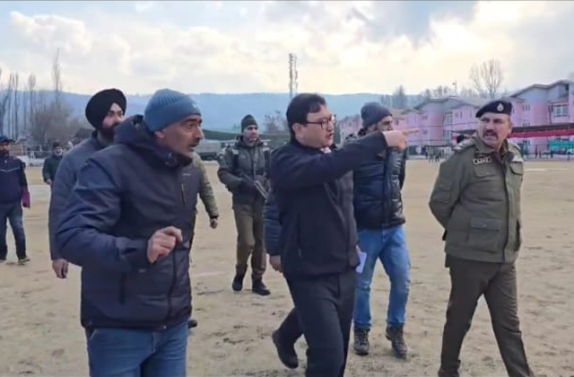 बारामूला(मीर आफताब): बारामूला के उपायुक्त मिंगा शेरपा ने आज 26 जनवरी गणतंत्र दिवस समारोह के मुख्य समारोह स्थल जिला पुलिस लाइन बारामूला का मौके पर दौरा किया। डी.सी. ने अंतिम तैयारियों की समीक्षा की और कहा कि भव्य आयोजन के लिए लगभग सभी व्यवस्थाएं हो चुकी हैं।