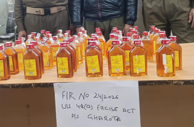 मौके पर की गई तलाशी के दौरान, उसके पास से JK स्पेशल व्हिस्की की 180 ml की 52 बोतलें बरामद की गईं। इस बारे में, पुलिस स्टेशन घरोटा में एक्साइज एक्ट की धारा 48(a)/48(f) के तहत FIR नंबर 24/2026 दर्ज की गई है, और आगे की जांच चल रही है।