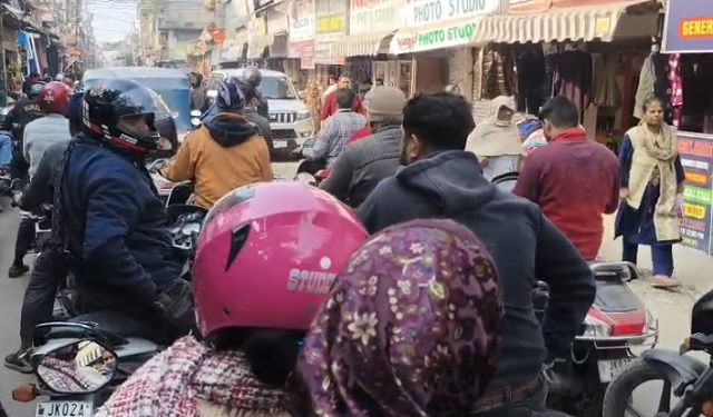 J&K: जिले के मुख्य बाजार में ट्रैफिक व्यवस्था अस्त-व्यस्त, लोग परेशान