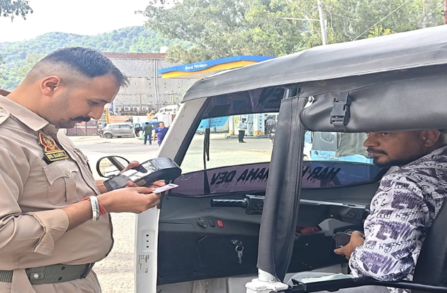 राजौरी (शिवम) : राजौरी जिले में यातायात नियमों के पालन को सुनिश्चित करने और सड़क सुरक्षा को मजबूत बनाने के उद्देश्य से मोटर वाहन विभाग की टीम ने शहर के व्यस्त क्षेत्र पंजा चौक पर व्यापक वाहन जांच अभियान चलाया। इस दौरान नियमों का उल्लंघन करने वालों के खिलाफ कड़ी कार्रवाई की गई। अभियान के दौरान करीब 100 वाहनों की जांच की गई। दस्तावेजों की कमी, ओवरलोडिंग और अन्य यातायात नियमों का उल्लंघन करने वाले चालकों के खिलाफ कार्रवाई करते हुए 26 ई-चालान जारी किए गए, जिनसे लगभग ₹55,900 की राजस्व वसूली अपेक्षित है। इसके अलावा नियमों का उल्लंघन करते पाए गए 4 ई-ऑटो रिक्शा को जब्त किया गया।