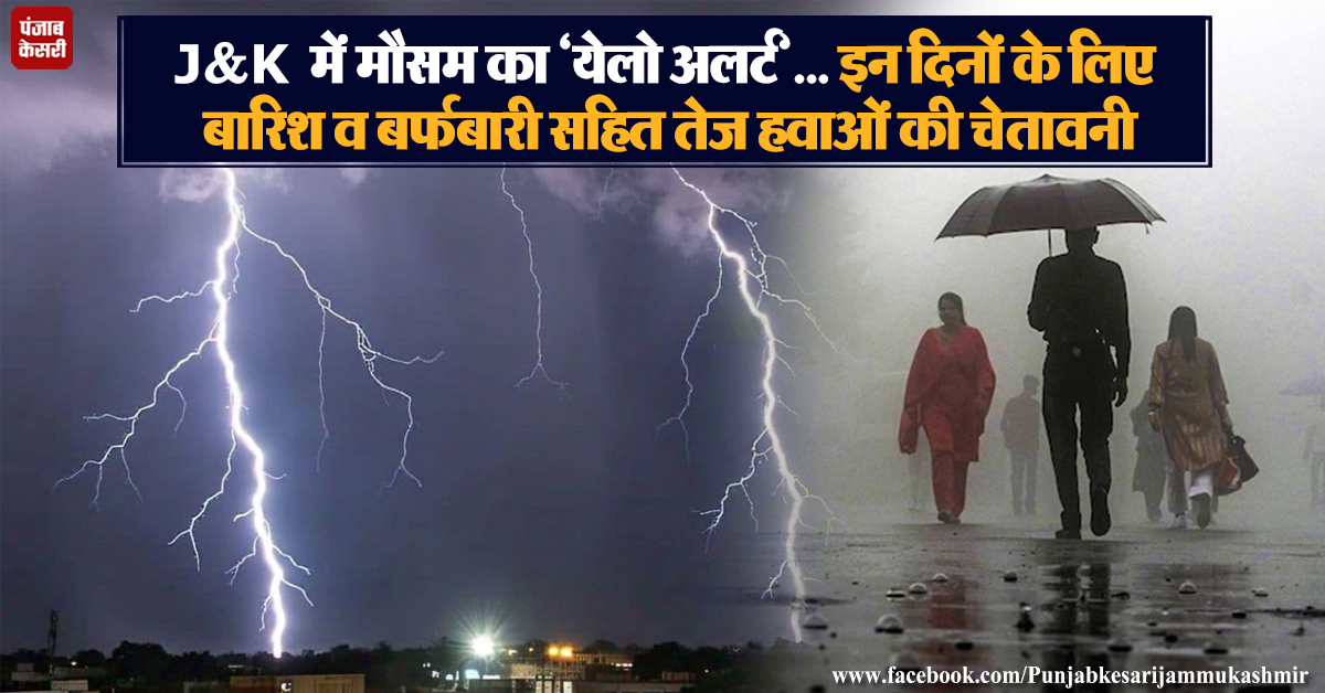 J&K में मौसम का ''येलो अलर्ट''... इन दिनों के लिए बारिश व बर्फबारी सहित तेज हवाओं की चेतावनी