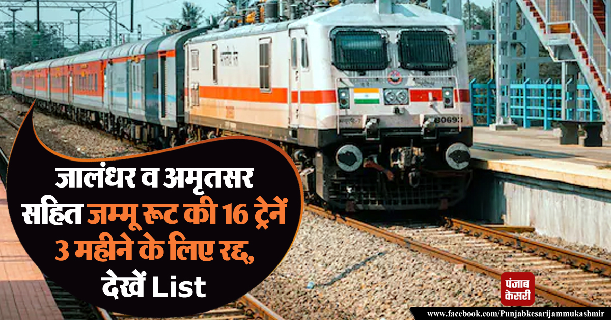 जालंधर व अमृतसर सहित जम्मू रूट की 16 ट्रेनें 3 महीने के लिए रद्द, देखें List