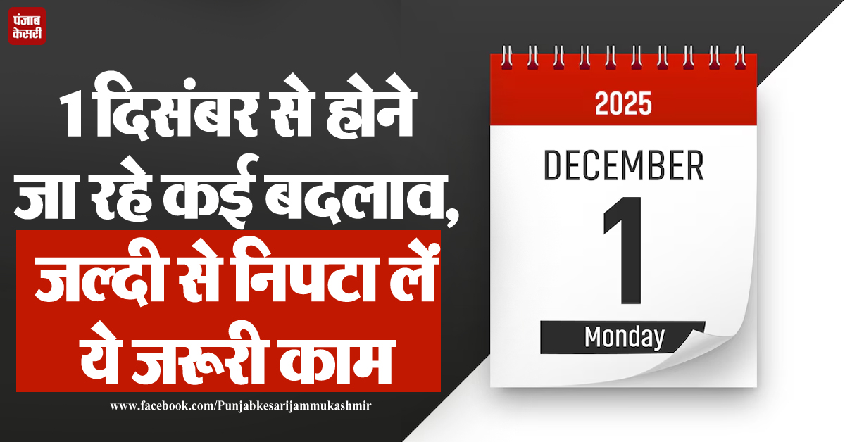 जम्मू–कश्मीर डेस्क: 1 दिसंबर से देशभर में कई अहम बदलाव लागू होने जा रहे हैं। ये बदलाव सीधे तौर पर आम लोगों की रसोई, पेंशन और टैक्स से जुड़े कामों पर असर डालेंगे। नवंबर खत्म होने से पहले लोगों की चिंता इसलिए बढ़ गई है, क्योंकि अगर जरूरी काम 30 नवंबर तक पूरे नहीं किए गए, तो नए महीने की शुरुआत मुश्किलें बढ़ा सकती है। आइए जानते हैं कि क्या बदलने वाला है और किन कामों को जल्द निपटाना जरूरी है—
