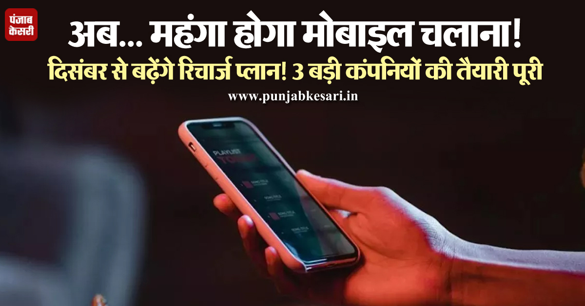 अब... महंगा होगा मोबाइल चलाना! दिसंबर से बढ़ेंगे रिचार्ज प्लान! 3 बड़ी कंपनियों की तैयारी पूरी